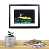Cut into multiple layers of coloured card and mounted in one of new recycled box frames the picture sits beautifully against a golden sky. The sheep are individually cut and mounted into position on the scene. When lit from above it will create a magical shadow effect on the back of the mount.