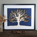 Created from an original photograph of a winter Oak tree, the design is cut into a thin poplar veneer before being fixed and mounted into the frame and on to a black or grey backing.