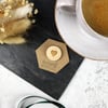 A lovely engraved heart button brooch or lapel pin, engraved and cut into birch veneer.