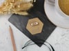 Cut into 4mm Birch veneer and finished with a chrome clasp on the back