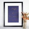 The words are all individually cut and mounted on a blue backing in one of our eco friendly lack frames. They come with glass front and look fab. The perfect addition to your gallery wall, and the ideal gift for any Oasis fans out there.