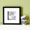 The picture is cut into a layer of black card and mounted in a deep box frame, so when it is placed in a well lit area the picture creates magical shadows on the mount behind.