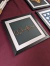 Each piece is individually cut and mounted on to a dark green backing mount and framed up in one of our eco-friendly black box frames. These pieces can be hung or stood using the stand on the rear.