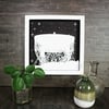 The piece is framed in a deep black or white box frame, which both lend the piece a wonderful night sky quality